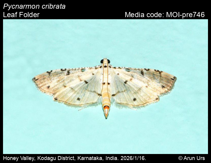 Singhamahapatra, A. 2026. Pycnarmon cribrata (Fabricius, 1794) – Leaf Folder. In Sondhi, S., R.P. Singh, G. Iyer, J. D'silva and K. Kunte (Chief Editors). Butterflies of India, v. 4.11. Published by the Indian Foundation for Butterflies. URL: https://www.mothsofindia.org/pycnarmon-cribrata, accessed 2026/03/04.