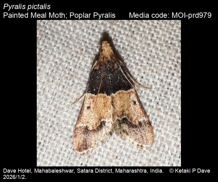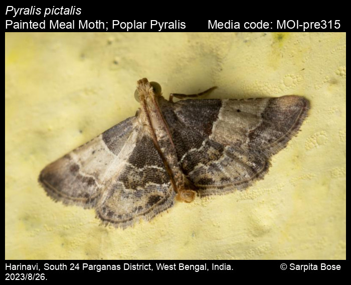 Anonymous 2026. Pyralis pictalis (Curtis, 1834) – Painted Meal Moth; Poplar Pyralis. In Sondhi, S., R.P. Singh, G. Iyer, J. D'silva and K. Kunte (Chief Editors). Butterflies of India, v. 4.11. Published by the Indian Foundation for Butterflies. URL: https://www.mothsofindia.org/pyralis-pictalis, accessed 2026/03/25.