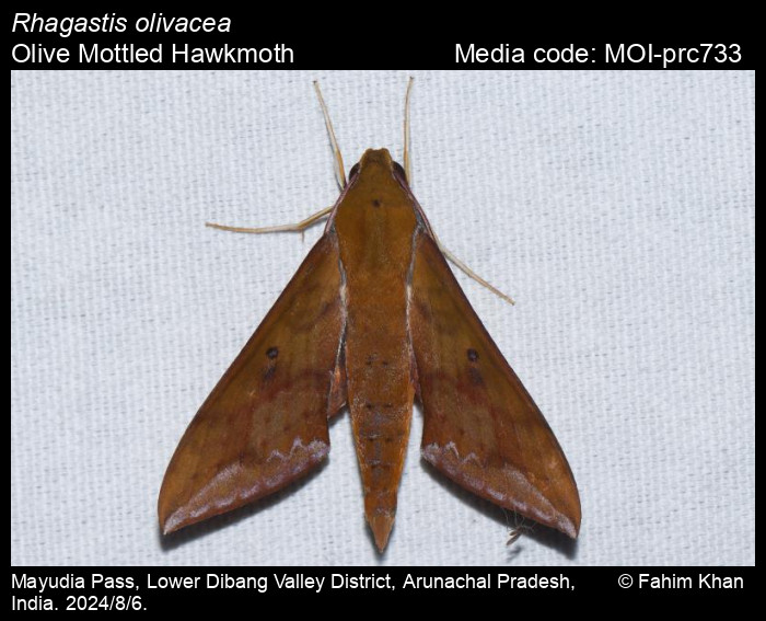 Anonymous 2026. Rhagastis olivacea (Moore, 1872) – Olive Mottled Hawkmoth. In Sondhi, S., R.P. Singh, G. Iyer, J. D'silva and K. Kunte (Chief Editors). Butterflies of India, v. 4.1. Published by the Indian Foundation for Butterflies. URL: https://www.mothsofindia.org/rhagastis-olivacea, accessed 2026/01/31.