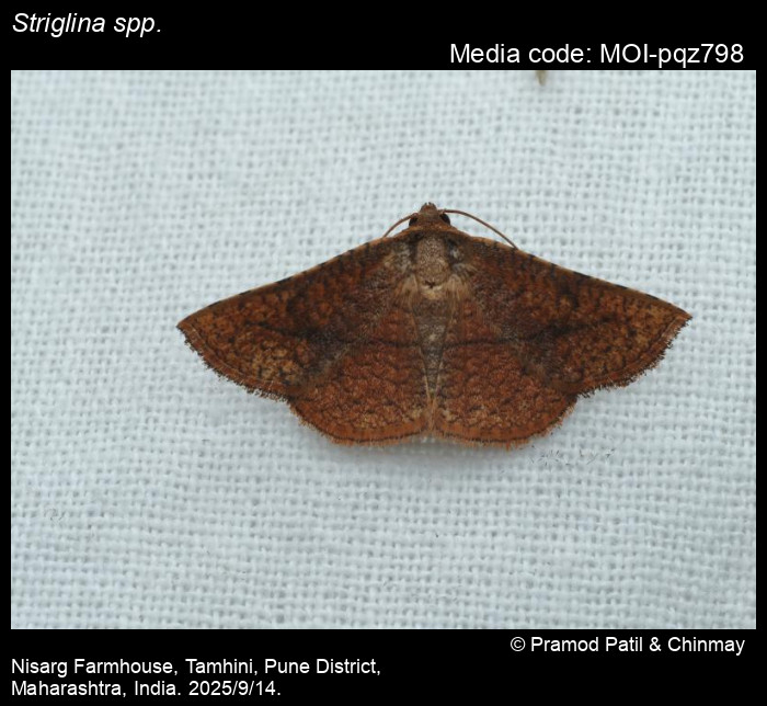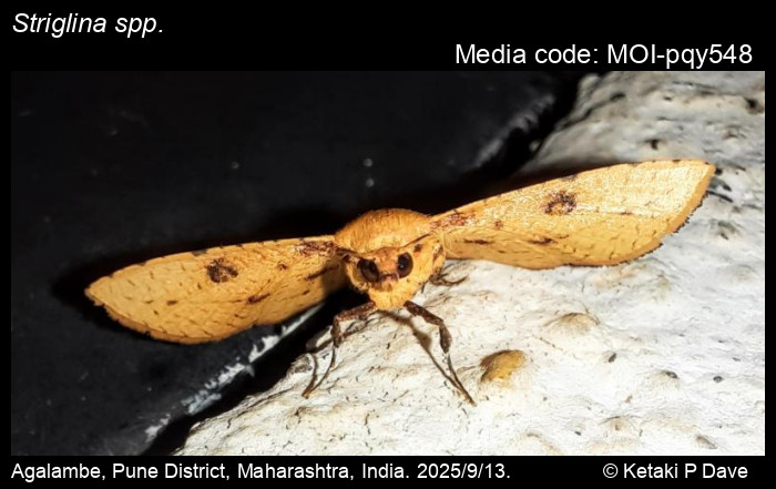 Anonymous 2025. Striglina spp. Guenée, 1877 – . In Sondhi, S., R.P. Singh, G. Iyer, J. D'silva and K. Kunte (Chief Editors). Butterflies of India, v. 4.11. Published by the Indian Foundation for Butterflies. URL: https://www.mothsofindia.org/striglina-spp, accessed 2025/10/20.