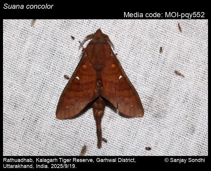 Anonymous 2025. Suana concolor (Walker, 1855) – . In Sondhi, S., R.P. Singh, G. Iyer, J. D'silva and K. Kunte (Chief Editors). Butterflies of India, v. 4.11. Published by the Indian Foundation for Butterflies. URL: https://www.mothsofindia.org/suana-concolor, accessed 2025/10/22.