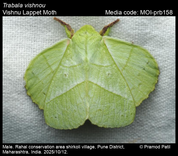 Anonymous 2025. Trabala vishnou (Lefèbvre, 1827) – Vishnu Lappet Moth. In Sondhi, S., R.P. Singh, G. Iyer, J. D'silva and K. Kunte (Chief Editors). Butterflies of India, v. 4.1. Published by the Indian Foundation for Butterflies. URL: https://www.mothsofindia.org/trabala-vishnou, accessed 2025/12/07.
