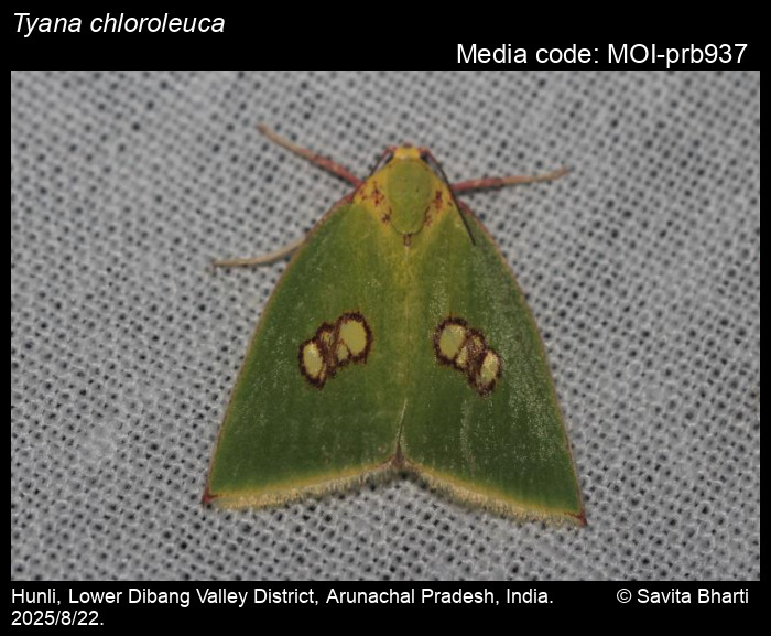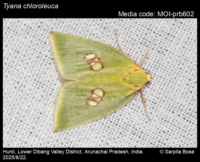 Anonymous 2026. Tyana chloroleuca Walker, 1866 – . In Sondhi, S., R.P. Singh, G. Iyer, J. D'silva and K. Kunte (Chief Editors). Butterflies of India, v. 4.11. Published by the Indian Foundation for Butterflies. URL: https://www.mothsofindia.org/tyana-chloroleuca, accessed 2026/02/15.