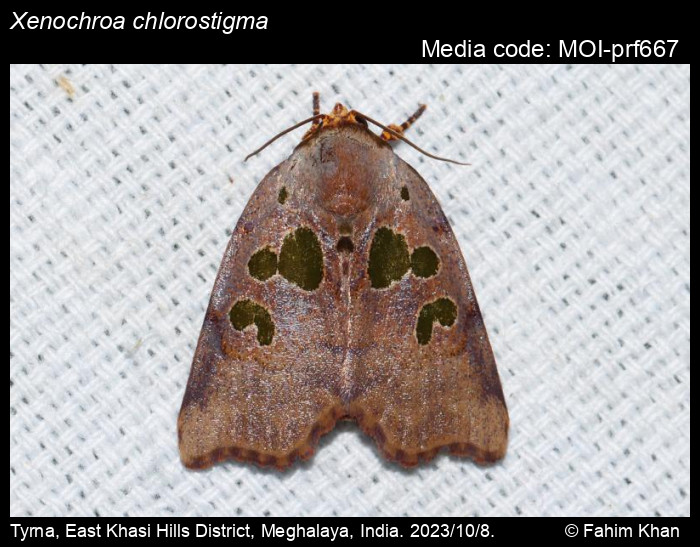 Anonymous 2026. Xenochroa chlorostigma (Hampson, 1893) – . In Sondhi, S., R.P. Singh, G. Iyer, J. D'silva and K. Kunte (Chief Editors). Butterflies of India, v. 4.12. Published by the Indian Foundation for Butterflies. URL: https://www.mothsofindia.org/xenochroa-chlorostigma, accessed 2026/03/31.